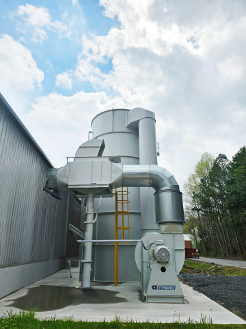 Chez Typhoon, nous avons créé une solution innovante ! Nous avons installé un système de broyage complet pour redimensionner les déchets de sciage et de broyage (composés plastiques) extraits de notre filtre à poussière.